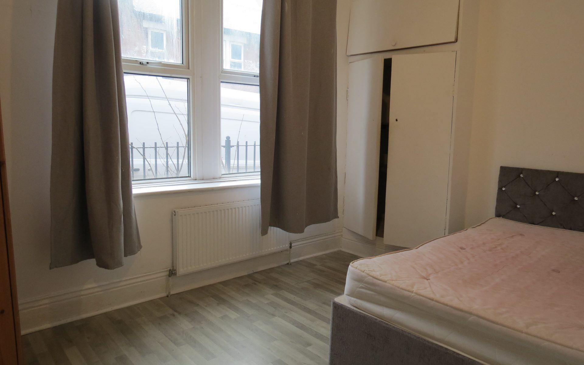 The flat comprises two well-proportioned bedrooms, each offering generous floor space and large windows that flood the rooms with natural light.